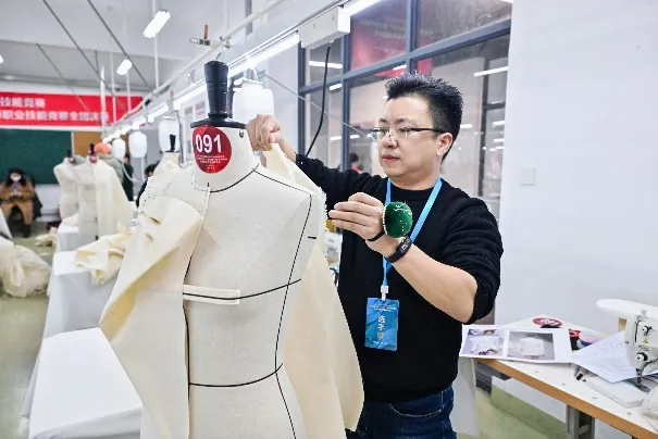 根据《人力资源社会保障部关于授予2019—2020年度职业技能竞赛优秀选手全国技术能手称号的决定》(人社部函〔2021〕99号)文件精神,在2021年度全国行业职业技能竞赛——全国纺织行业“QY千亿国际杯”服装制版师职业技能竞赛中获得第一至三名的曹小华、胡牛崽、谢佳音等3位选手,由人力资源和社会保障部授予“全国技术能手”荣誉称号。在本次大赛的开幕式上,为三位获奖选手颁发了奖章、奖牌和荣誉证书。本次竞赛历时近5个多月,经过北京、上海、重庆、河北、江苏、浙江、福建、山东、安徽、河南、湖北、湖南、广东、四川、陕西、辽宁、吉林、新疆等18个省、自治区、直辖市的严格选拔和预赛,近百名优秀选手脱颖而出,成功晋级全国总决赛。本次竞赛组委会相关负责人介绍,本次竞赛强调理论结合实践,竞赛由理论知识考试、实际操作考核两部分组成,选手独立完成规定的竞赛内容。其中,理论知识考试采取闭卷笔试形式,以《服装制版师国家职业标准(2019 年版)》高级工以上的知识和技能要求命题,主要包括服装设计、服装制版、服装生产工艺、工艺技术文件编制四部分内容,侧重考核服装基础知识和服装生产的技术性知识。实际操作考核采用计算机操作和现场制作形式,考核内容包括“服装CAD制版”、“立体裁剪”、“样衣制作”三个模块,要求选手从男装、女装、羽绒服三个品类中任选其中一个进行考核。本次竞赛组委会相关负责人介绍,晋级本次决赛的选手,不仅是来自全国各地服装企业的优秀技术人才代表,而且代表了服装制版师行业高超的专业技术水平。本次竞赛为广大技能人才提供了展示精湛技能、相互切磋技艺的重要平台,对壮大技术工人队伍、推动经济社会发展具有积极作用。赵雅彬表示,本次竞赛不仅充分展示了引领示范作用,而且进一步通过创新组织形式,提高竞赛质量,推广竞赛成果,实现了以赛促学、以赛促训、以赛促评、以赛促建,同时也积极营造并弘扬了劳动光荣、技能宝贵、创造伟大的社会风尚,为服装行业打造了一支爱党报国、敬业奉献、技艺精湛、素质优良、规模宏大、结构合理的高技能人才队伍,为我国服装行业的高质量发展提供了人才保障。 裁判组表示,服装制版师在服装设计和生产过程中起着至关重要的作用。他们负责将设计师的创意图纸转化为实际的平面纸样,确保服装的尺寸、比例和形状准确无误,从而满足人体穿着的舒适性和美观性。随着消费者对服装品质要求的不断提高,特别是在高端定制和品牌服装领域,具备“工匠精神”的优秀服装制版师的定位变得更加重要。本次竞赛不仅重点考核并检验了参赛选手对竞赛题目的解读能力,对专业技能的掌握水平,以及对制版技术运用的熟练程度,而且也对参赛选手对服装设计审美的把握、对时尚敏感度,对面料和工艺驾驭提出了新的要求。此外,裁判组还表示,在服装制版师的培养方面,无论是企业还是相关专业院校,都需要将重点放在理论学习、实操能力以及对新科技、新技术的掌握与运用方面。当前,数字化、智能化等科技手段不断渗透,服装制版师需要不断深入学习、积极实践,让数字技术与传统的制版工艺相结合,从而让服装制版这一职业在未来发展中实现新的跨越。在竞赛间隙,各位参赛选手纷纷表示,本次竞赛的举办,不仅为选手们搭建了互相交流学习的平台,检验了广大服装制版师的理论知识水平和实际操作能力,而且还通过竞赛这种方式让自身不断发现自己工作中存在的不足与短板,让自己可以在今后工作中继续不断挖潜,提升自身技能水平,培养创新能力,为努力践行“工匠精神”找准方向。此外,在今后的工作中,还要不断提升自身审美能力、创新制版工艺、强化对CAD制版等数字化技术的掌握程度,更好地服务于我国服装行业的高质量发展。在本次竞赛中,各位参赛选手们沉着冷静、一丝不苟,凭借自己扎实的理论基础和丰富的实践经验,纷纷拿出了自己的独家功夫,充分发挥了比学赶帮超的竞赛精神,争分夺秒、细致入微,不仅出色地完成了各项竞赛内容,而且在理论知识与实际操作方面都展示了选手们扎实的基本功和优秀的职业素养,在一针一线、一刀一剪、一寸一毫之间全方位展现了我国服装制版师的高超技能水平,很好的诠释了“工匠精神”在服装制版领域的深入实践。