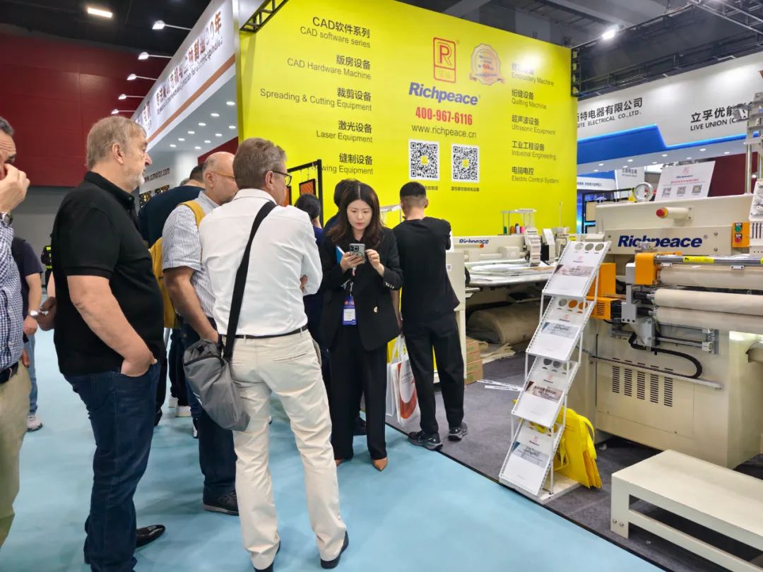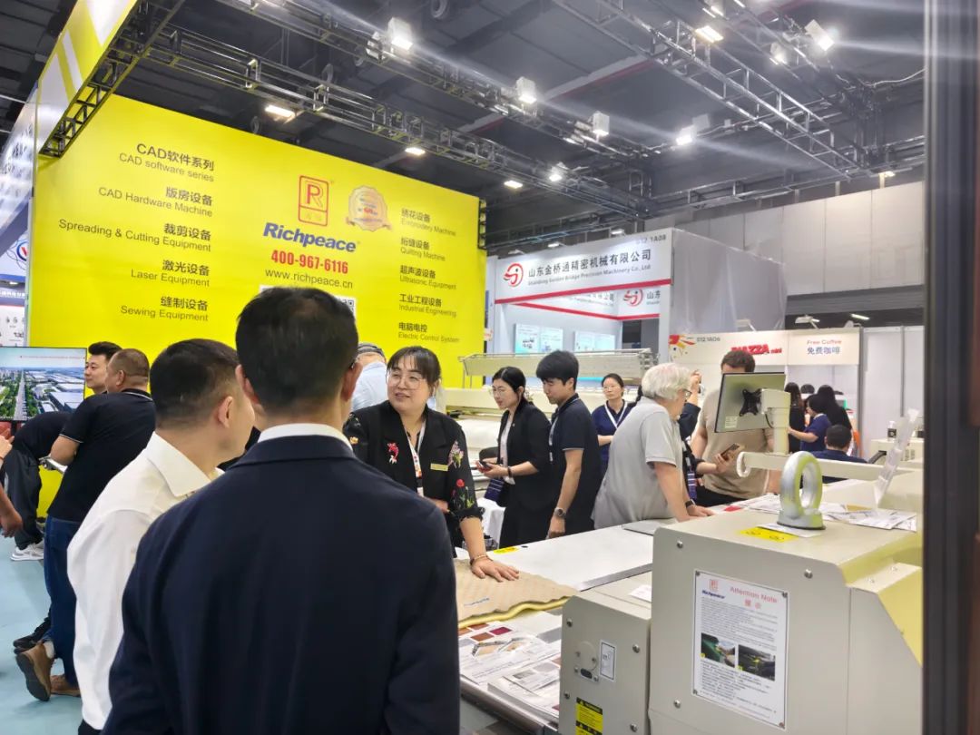 During the expo, Richpeace professional staff patiently explained the " cutting+ sewing" solutions of flexible materials in the Hometextile Solution field, and introduced the company's software, computers, electronic controls, devices, components, machines, customization and complete sets of equipment to customers in detail against latest results.